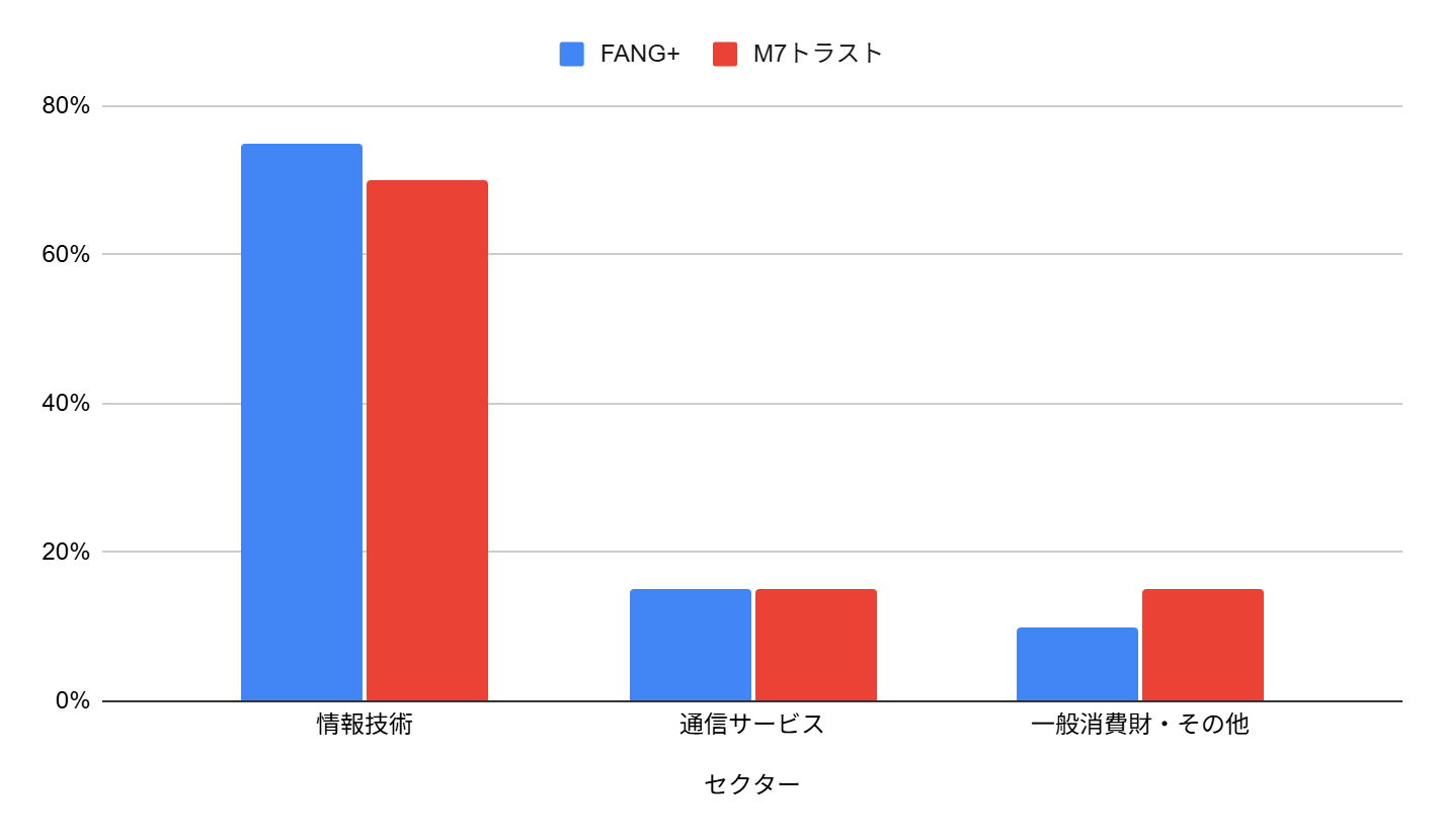 FANG+とマグニフィセント・セブンのセクター構成比較