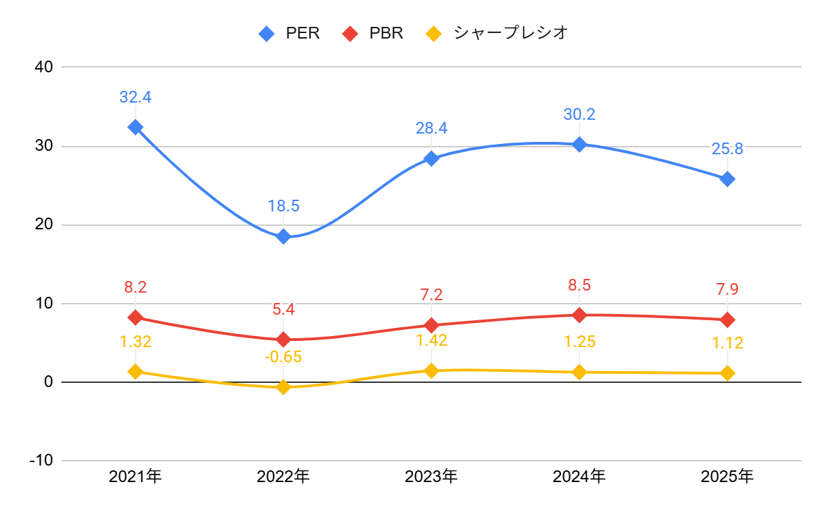 | シャープレシオ | 1.32 | -0.65 | 1.42 | 1.25 | 1.12 |