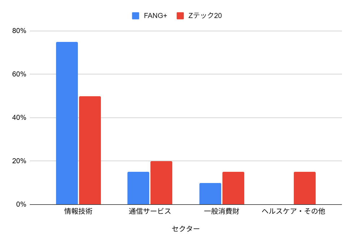 FANG+とZテック20のセクター構成比較