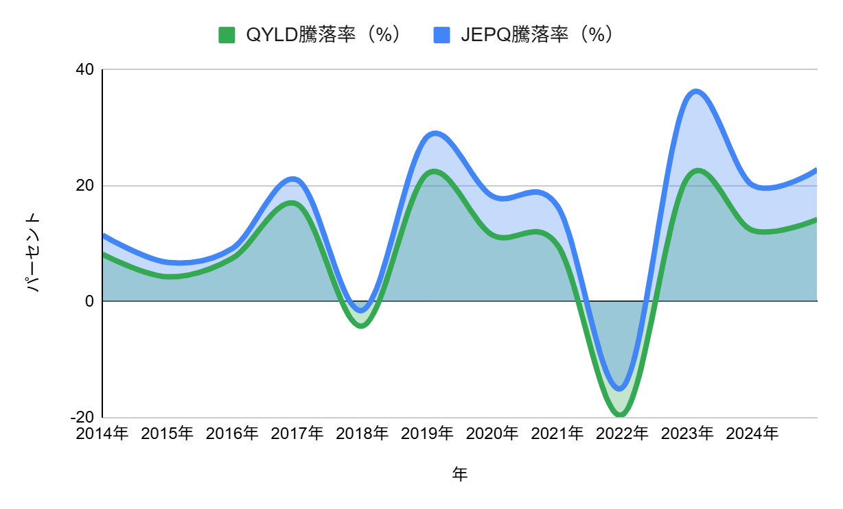 QYLDとJEPQの騰落率比較